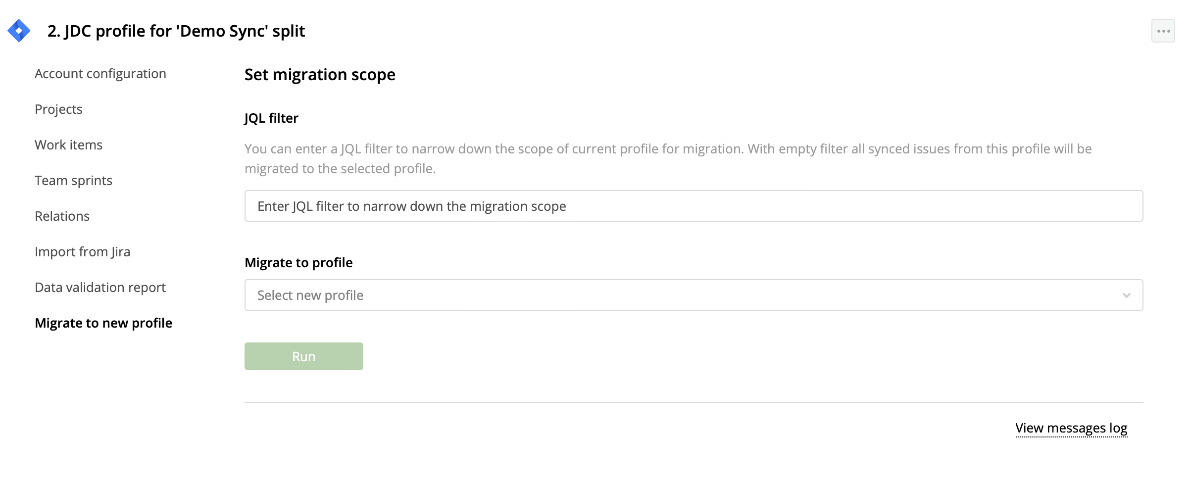 - After Jira Server projects are moved to Jira Cloud, Targetprocess migration can be started. Go to Integrations > Integration profile > Migrate to new profile. Enter the JQL filter for the current Jira instance and move to new profile with only issues that match the JQL filter. If you choose the destination profile without additional JQL filter, then all issues synced with current profile will be searched for in the Jira instance of the destination profile and attempted to switch their sync to new profile mappings.